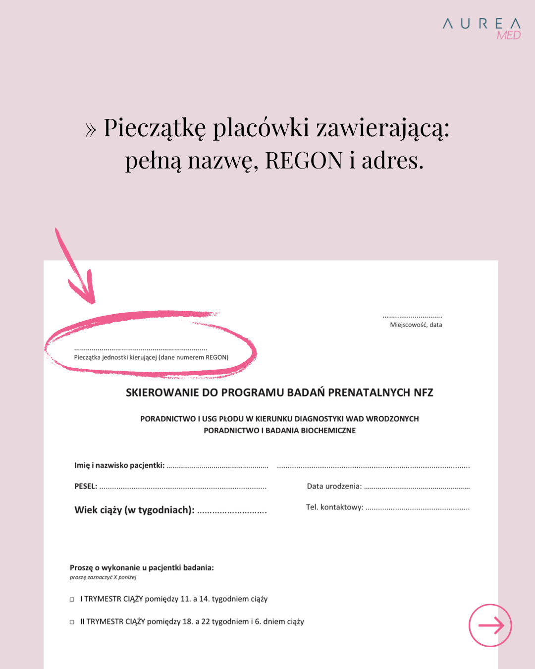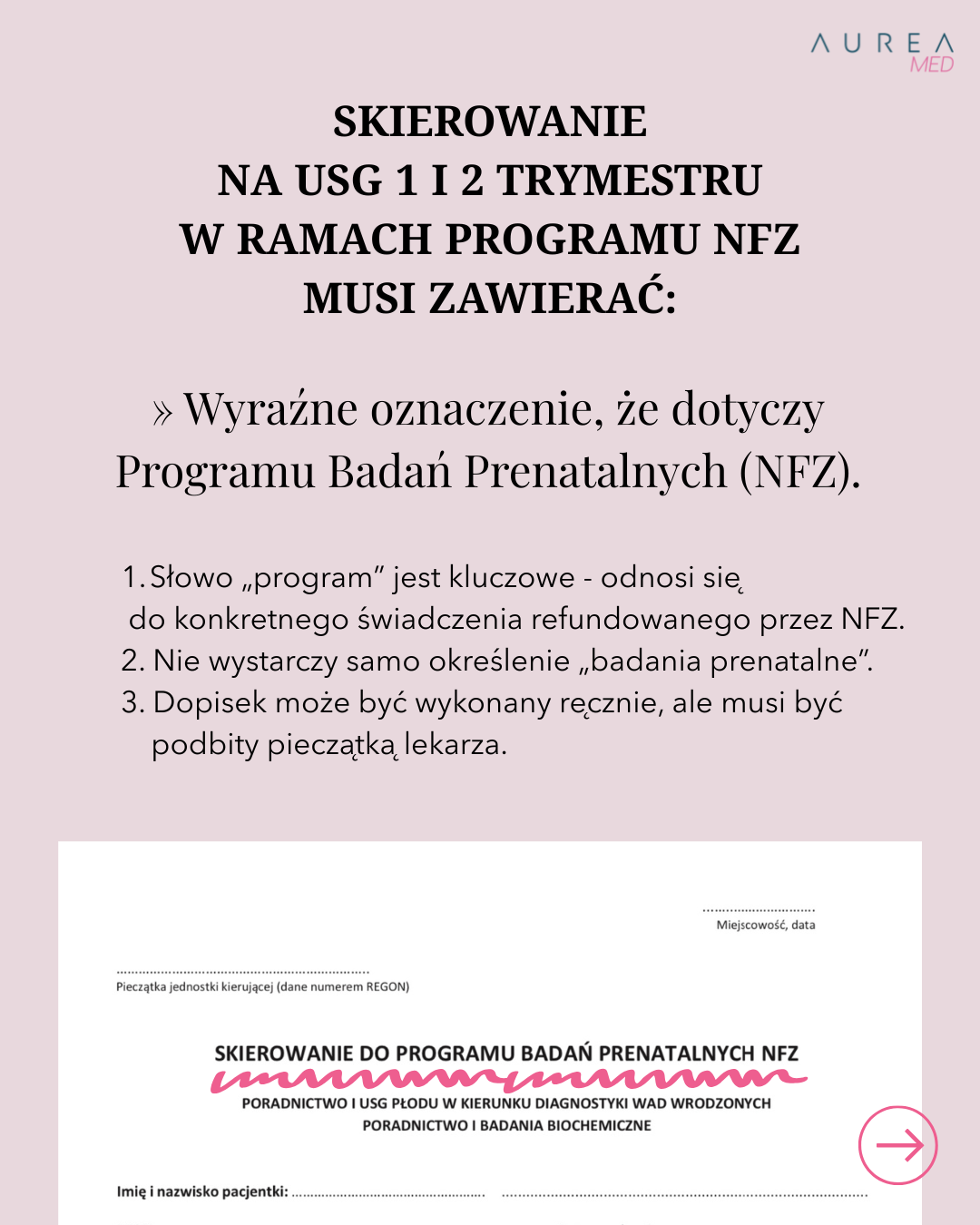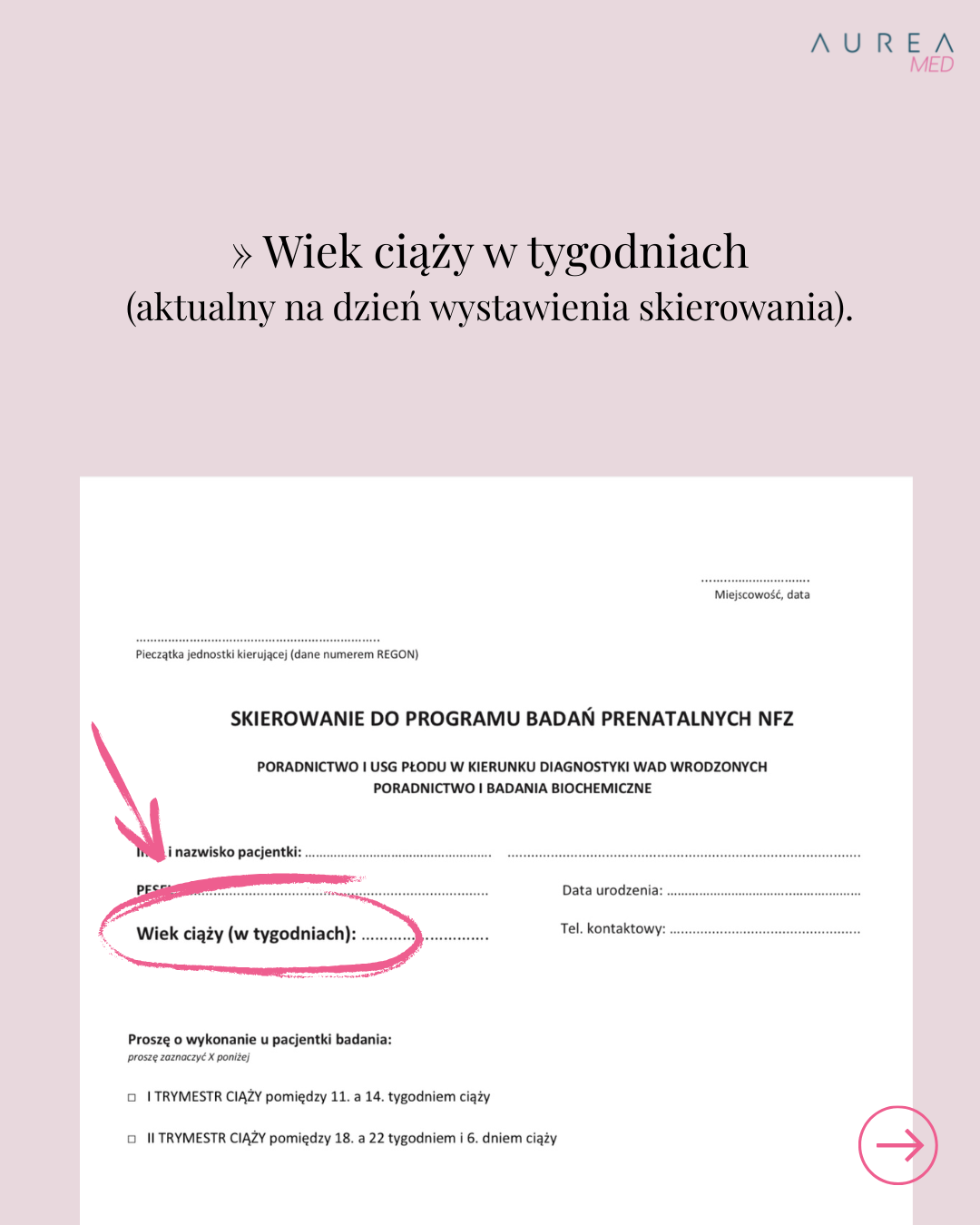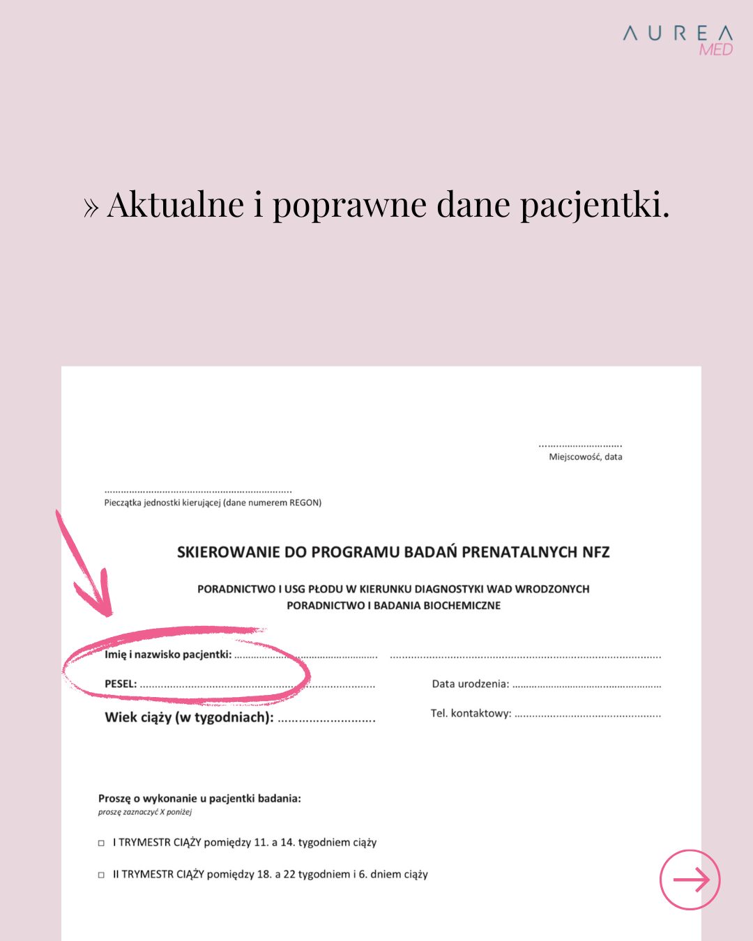 SKIEROWANIE DO PROGRAMU BADAŃ PRENATALNYCH NA USG 1 & 2 TRYMESTR (to etap „Poradnictwo i badania biochemiczne”