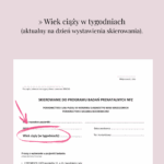 - Informacje o zaawansowaniu ciąży (wiek ciąży w tygodniach),