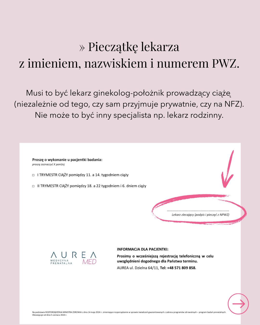 - dołączonymi wynikami badań potwierdzającymi zasadność skierowania do tych części programu, wystawione przez lekarza prowadzącego ciążę